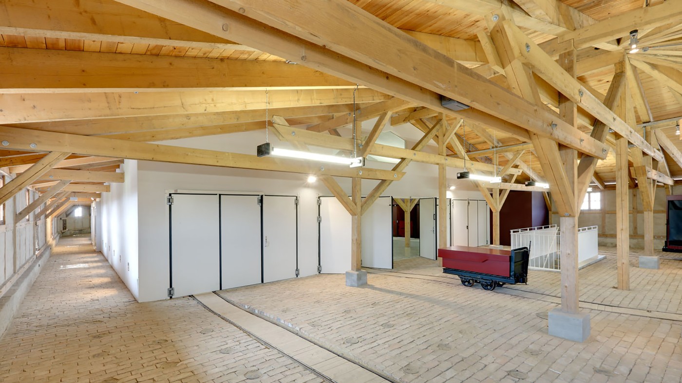 Für das Ziegeleimuseum wurde der unter Denkmalschutz stehende Gebäudekomplex umgeplant und neu gestaltet sowie um eine multifunktional nutzbare Veranstaltungshalle ergänzt. Schwerpunkt des Umbaukonzepts ist der Erhalt der historischen Substanz mit ihren Raumstrukturen, Lichtverhältnissen und visuellen Bezügen. Es entstand ein großzügiger Eventraum, der mit seinem mächtigen Schornstein zugleich sprechendes Zeugnis seiner industriellen Vergangenheit ist. Im Boden erhielt man die Schienen der Ziegelloren und auch die Loren selbst sind noch zu sehen – dem neuen Zweck entsprechend umfunktioniert als Serviceelemente. Das neu Gebaute verfolgte das Prinzip eines beheizten Hauses im Haus, welches sich visuell klar vom Alten abhebt. Serviceflächen sind in einem Anbaukörper gruppiert, der zugleich als sichtbares Zeichen des Funktionswechsels steht sowie als zweiter Eingang fungiert.
