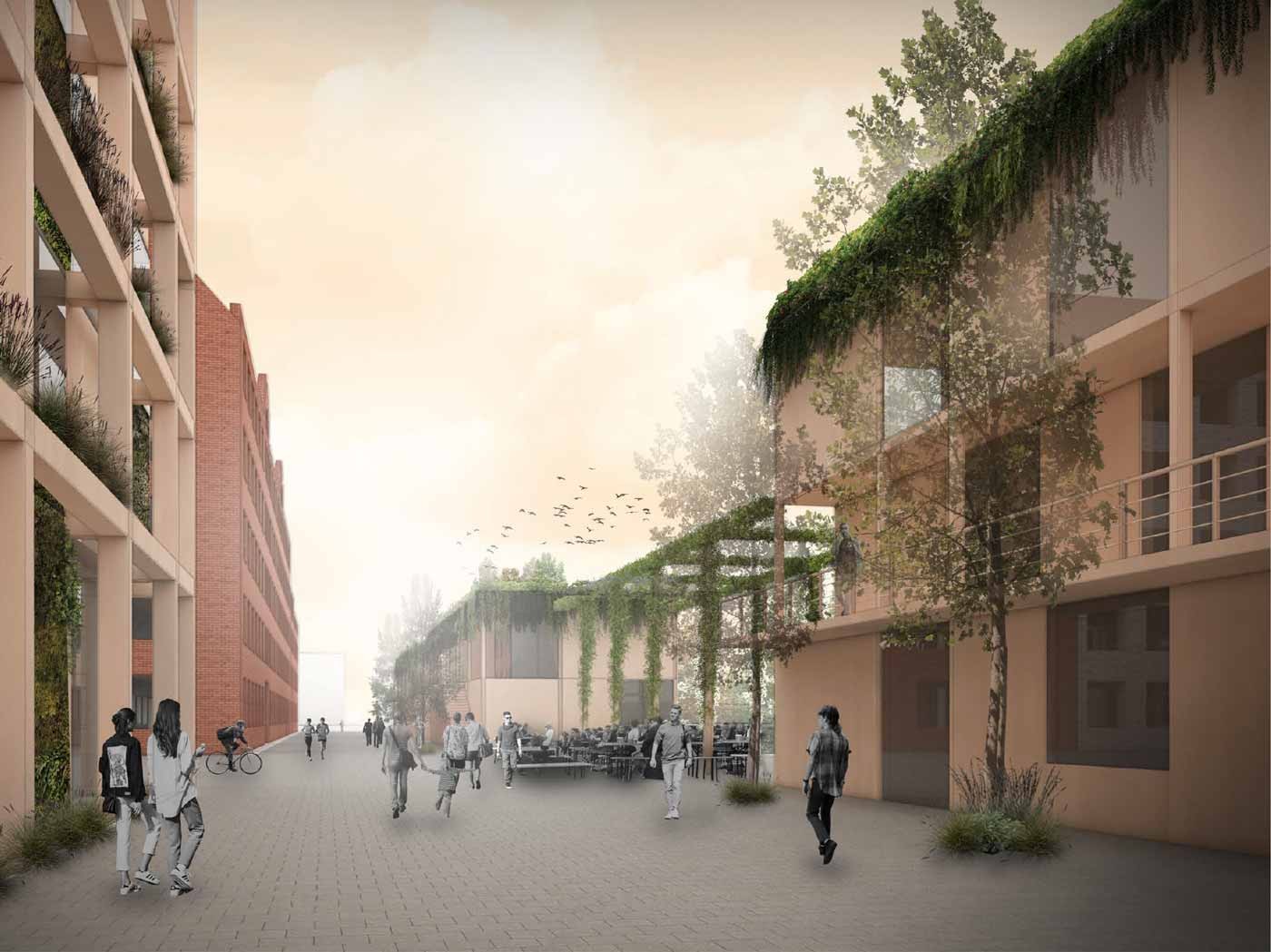 Unser ganzheitlicher Ansatz für die Transformation der denkmalgeschützten Schellackhöfe in Berlin vereint Architektur, Gestaltung und Kommunikation als Motor sozialer Stadtentwicklung. Historische Substanz, grüne Infrastruktur und vielfältige Nutzungen verschmelzen zu einem identitätsstiftenden Ort. Offen, nachhaltig und sozial geprägt – ein Modell für urbane Zukunft, das Arbeit, Freizeit und Gemeinschaft neu denkt.