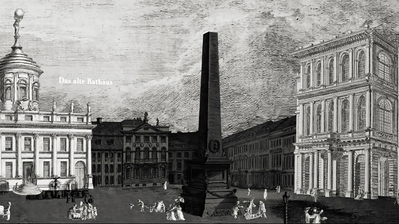 Die Medieninstallation besteht aus animierten historischen Illustrationen vom Alten Rathaus und dem ehemaligen Palast Barberini. Auf einer historischen Reise entdecken die Besucher einleitend beide Bauten während eines Tagesablaufs auf dem Alten Markt in Potsdam. Hierbei werden besonders die gestalterischen Einflüsse der Gebäude sowie ihre Gemeinsamkeiten und Unterschiede grafisch thematisiert und durch das Zusammenspiel von Bild, atmosphärischem Geräusch und Musik zugänglich gemacht.