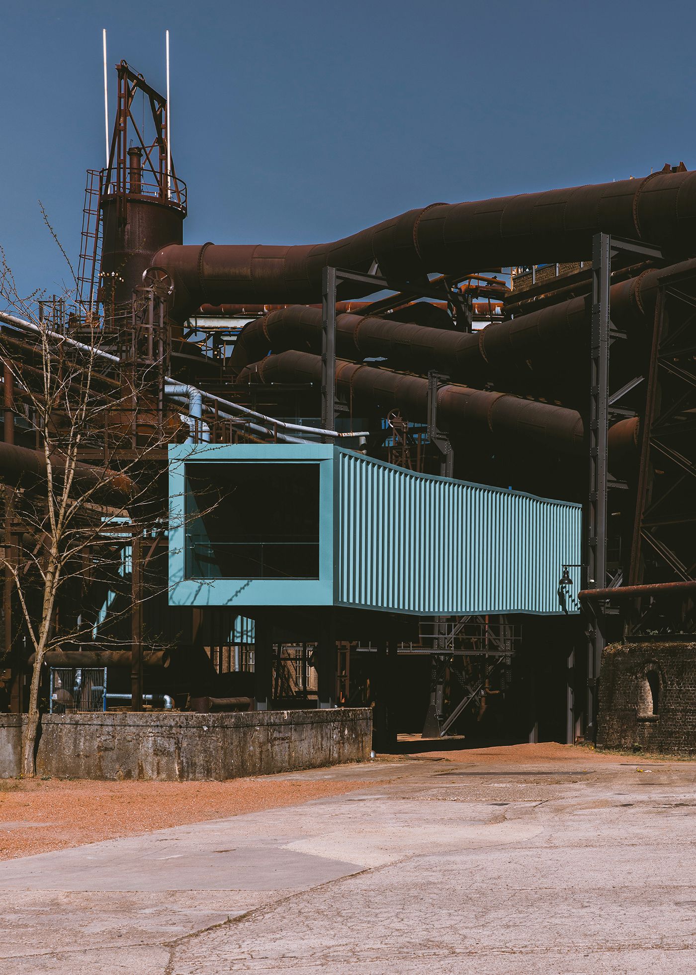 The Völklingen Ironworks' water tower, built in 1917/18, is one of the largest water towers ever constructed and a landmark of industrial culture in the Saarland. Duncan McCauley’s redesign of an industrial monument consisted of precise, sensitive interventions to open up and make the historic building accessible. The new entrance to the World Heritage Site includes a ticket office, shop, visitor center, and café. Inclusive design and barrier-free access connect the upper levels and the adjacent blower hall with the main site as part of a continuous circular route and for an attractive visitor experience. Carefully placed movement, thresholds, and vistas transform the pathway into a "Promenade Architecturale". All interventions were carried out in close coordination with the heritage authorities and UNESCO.