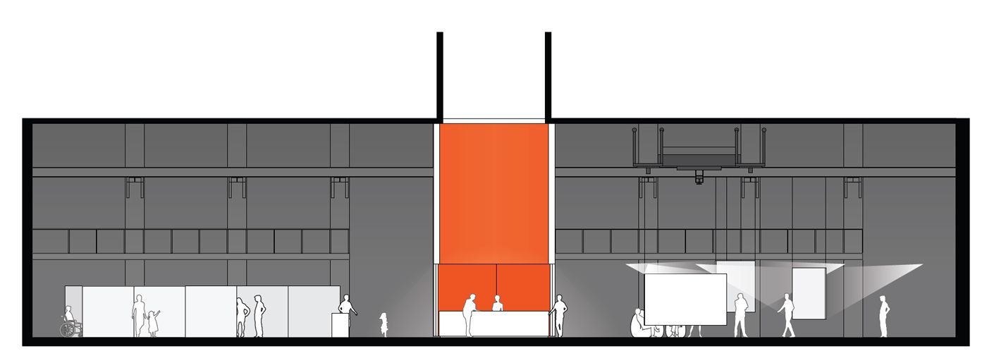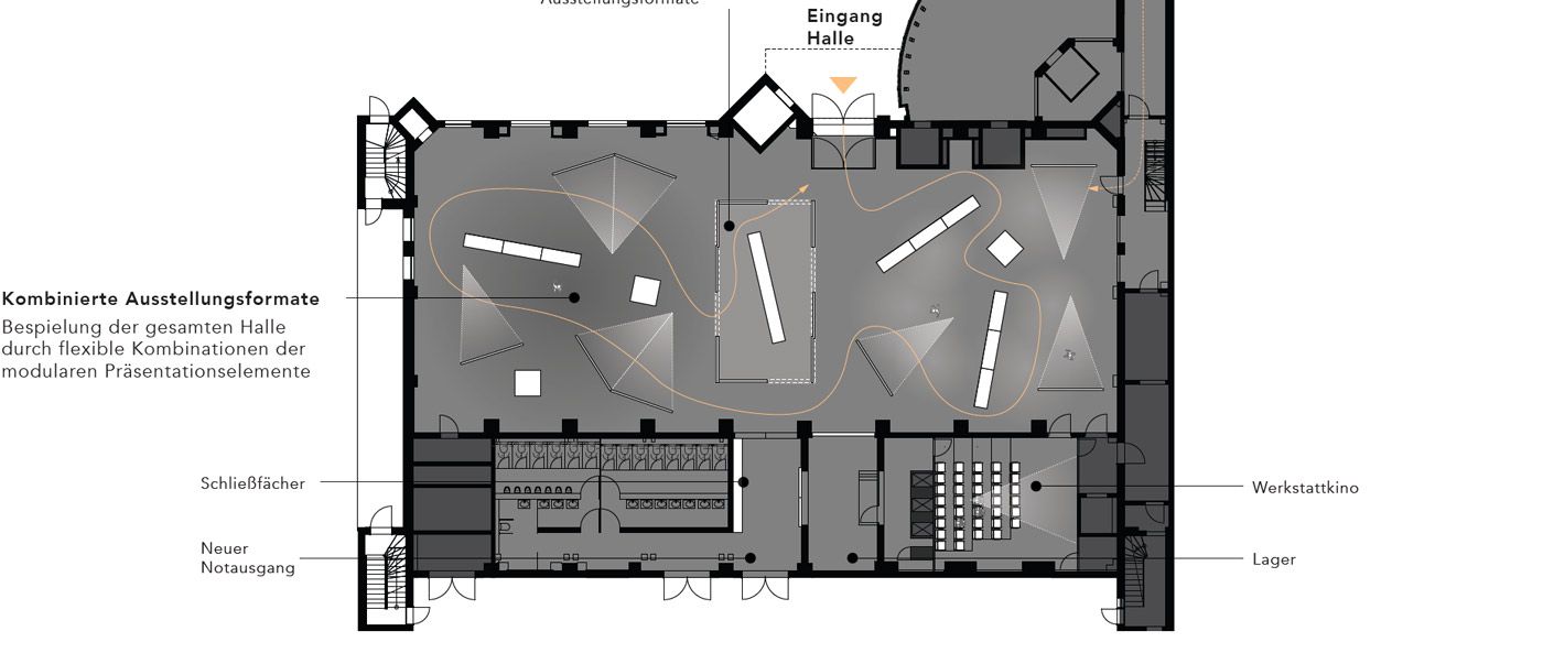 For the new exhibition spaces of the Deutsche Kinemathek - Museum for Film and Television, our concept created a confident yet restrained structure that reorganises the existing space and optimises usage. It integrates respectfully into the existing ensemble and creates dramatic spaces for a holistic visitor experience that helps convey cultural identity – a competition entry by Duncan McCauley.