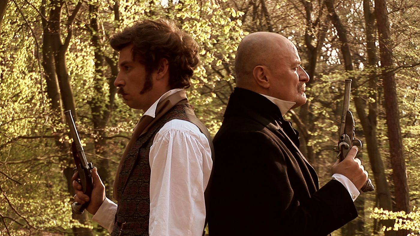 Using the dramatisation of a duel, we pass through the stations of Pückler’s life. The scene of the duel is montaged with images of Pückler’s inner life. Through the visualisation of Pückler’s thoughts, where various moments of his life are relived, the viewer has an insight into the prince’s adventures, provocations and flirtatiousness.
