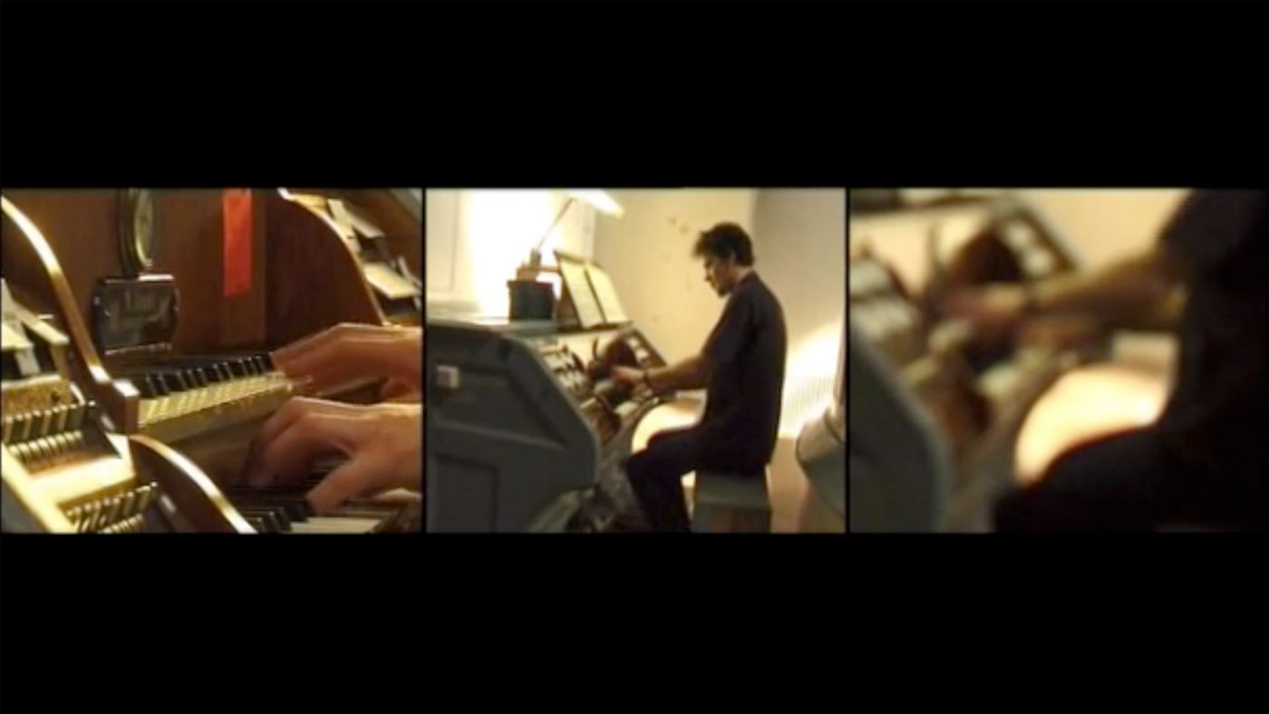 The triptych projection situated at the entrance archway of the building creates an environment out of images of elements within the church, which are not normally seen by the visitor or church-goer; the inside of the organ, the belfry and the view from the tower overlooking the city.
