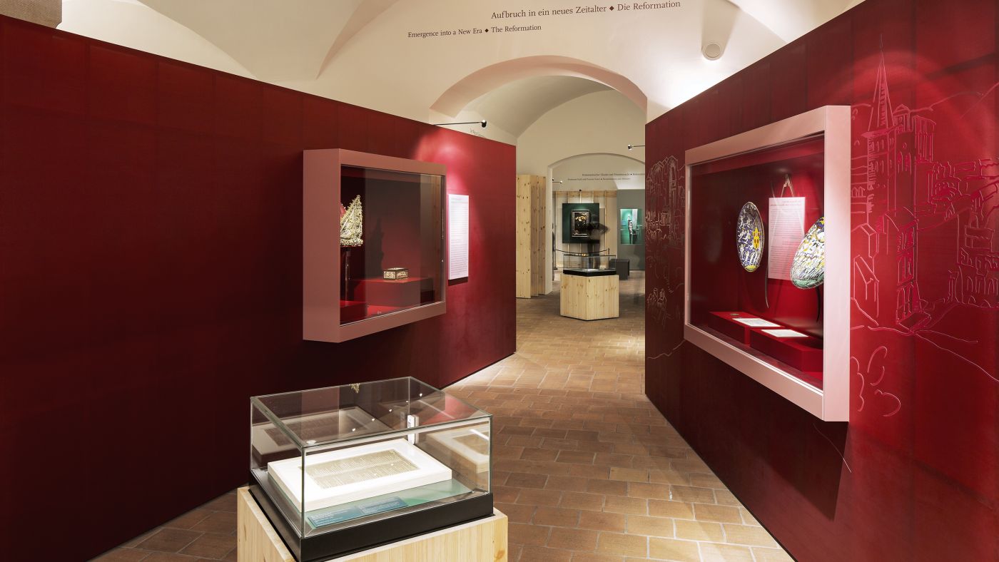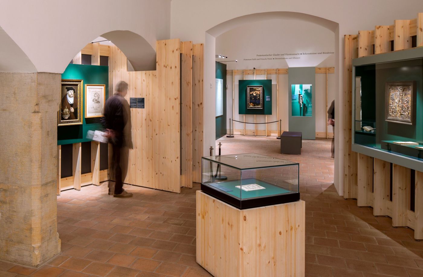 The city of Torgau is an authentic backdrop for the first large national exhibition of the 500th Jubilee of the Reformation, which the studio Duncan McCauley designed over 1500 sqm within five different locations. In the exhibition ‘Luther and the Princes’, visitors can circulate through the political history of the Reformation, its fascinating turnovers, the interplay between politics and religion as well as see the effects of Protestantism in current society. The design concept was developed in two ways; through the dynamic history and authentic fabric of the buildings. It illustrates the interdependency between religious and political powers. With precise room atmospheres, the design alludes to specific moments and protagonists of historical development. In the same way, the architectonical elements bring to expression –together with the accent lighting– the suspense between ‘carrying structure’ and ‘outlooking image’. Portraits of princes, images of Luther as well as further exhibits present the key figures and aspects of the Reformation, and at the same time tell a story about the protagonists and their carried correlations.