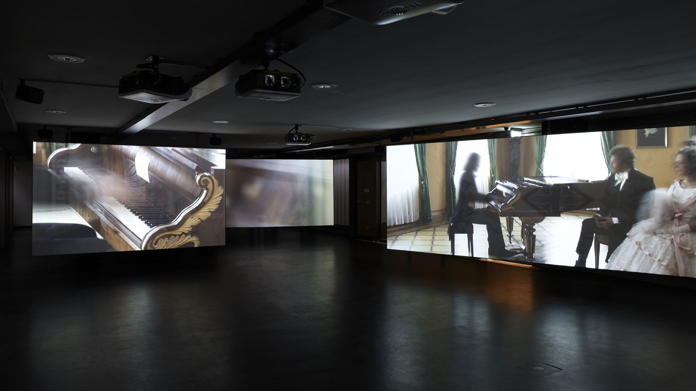 The focal point of the exhibition is the multi-channel video installation “The Garden of Memories”, which brings the metaphysical world of Prince Pueckler and his landscape architecture to life. Four synchronised screens present the beauty of the park throughout the year within the structure of an ideal walk from east to west.