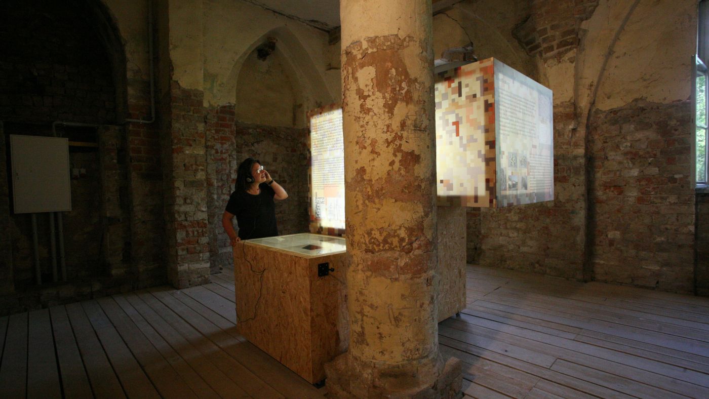 A large-scale renovation project in Gransee uncovered new insights into the town’s history. A converted Franciscan monastery enables visitors to explore this legacy by piecing together parts of a puzzle illustrating Gransee’s evolution via an exhibition and perceiving the town as a single entity. Each room in the monastery features back-lit graphic displays on a large puzzle-style block, integrated display cases and a number of likewise back-lit projections. A surround-sound audio collage describes the development of the medieval town and the construction of the monastery. At the same time, special lighting highlights notable architectural features of the building.