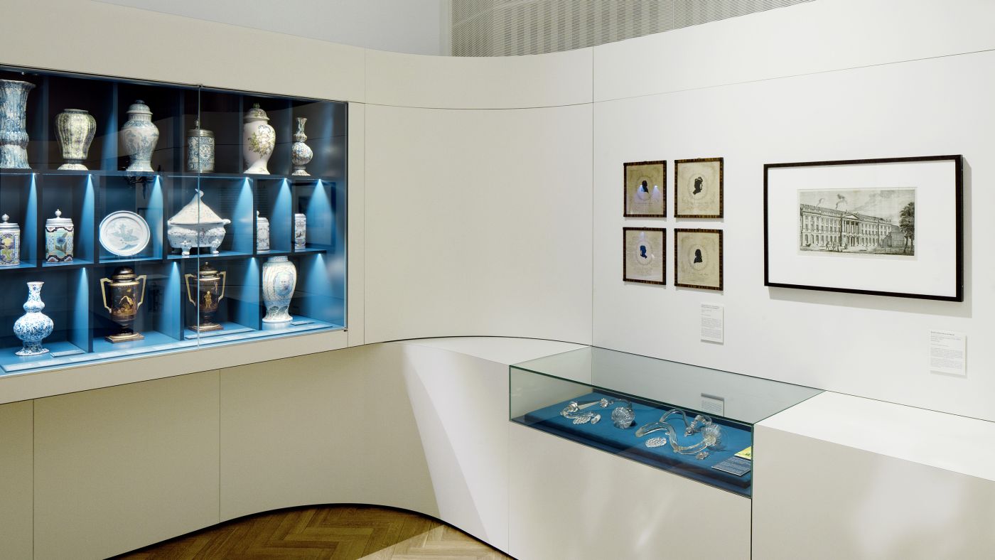 The design reflects how the city of Potsdam was transformed under Friedrich the Great. The interlocking shapes move fluidly through the historic rooms and cite the baroque details of the Frederician era, placing the focus on the object. The combination with interactive media installations allows visitors to experience a narrative space, animating and inspiring all the senses. The design is conceived in sustainable form so that the exhibition architecture can later be used for the permanent exhibition.